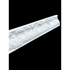 The crisp white finish and precise, repeating pattern demonstrate the high level of craftsmanship involved in its creation. This type of moulding is versatile and can be used on walls or ceilings to add depth & texture.