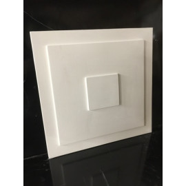 A square style  stepped moulding with very sharp lines ,projects 112 mm  onto the ceiling and 90 mm down the wall.